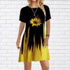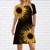 Lässiges Kleid für Damen, Sommer, schöne Kleider mit Sonnenblumen-Print für Damen, O-Ausschnitt, kurzärmelig, Übergröße