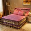 Europäische Luxus-Stickerei verdicken samt gesteppte Tagesdecke Single Queen King Spitze Bett Rock Bettdecke Bettlaken Kissenbezug #/