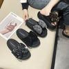 Damen Sommer Sandalen für Damen Tragen Modische Koreanische Version Vielseitige Pailletten Sandalen mit Dicken Sohlen Ein-Riemen Sandalen für Strand Damenschuhe