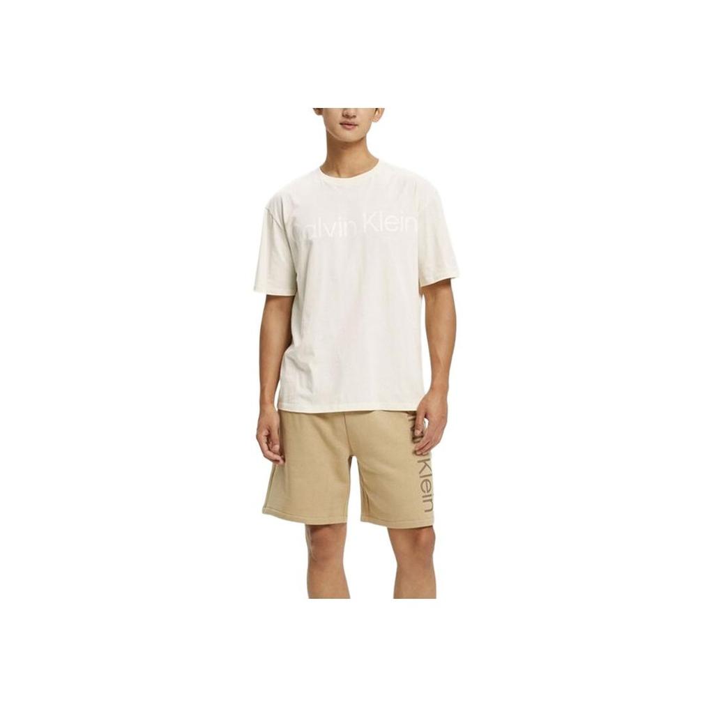 Calvin Klein Logo Print Loose Fit Round Neck Casual T-Shirt Men Tops Ivory 40HM890-100