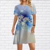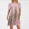 Damen Freizeitkleid Sommer Rosa Pflaumenblüten-Print Kleider für Damen O-Ausschnitt Kurzarmkleid Übergröße