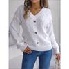 Herbst und Winter Einfarbig V-Ausschnitt Geknöpfter Zopf Laternenärmel Pullover