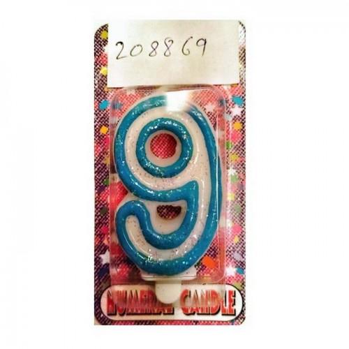 Glitzernde schillernde Kerze zum 9. Geburtstag