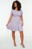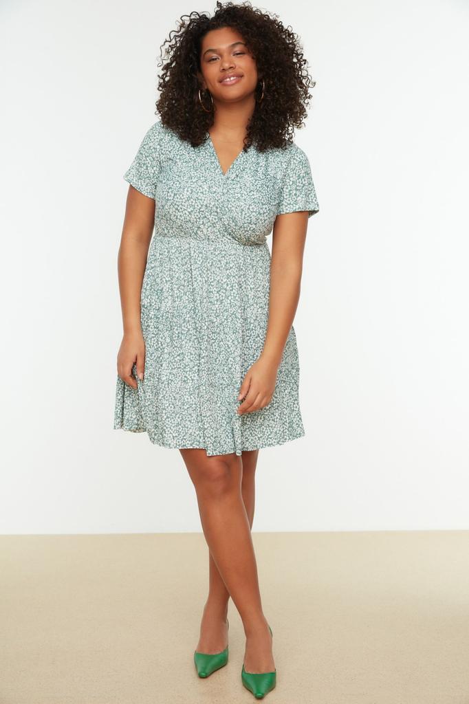 Damenmode Neues Plus-Big-Size-Kleid Grünes Strickkleid mit V-Ausschnitt und Blumenmuster