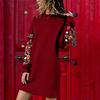 Frauen Herbst Winter Casual Langarm Floral Stickerei Sweatshirt Kleid