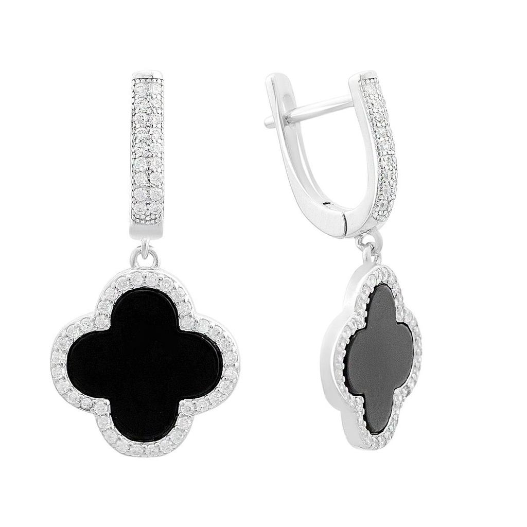 Silberohrringe mit natürlichem Onyx und Zirkonia (60001997)