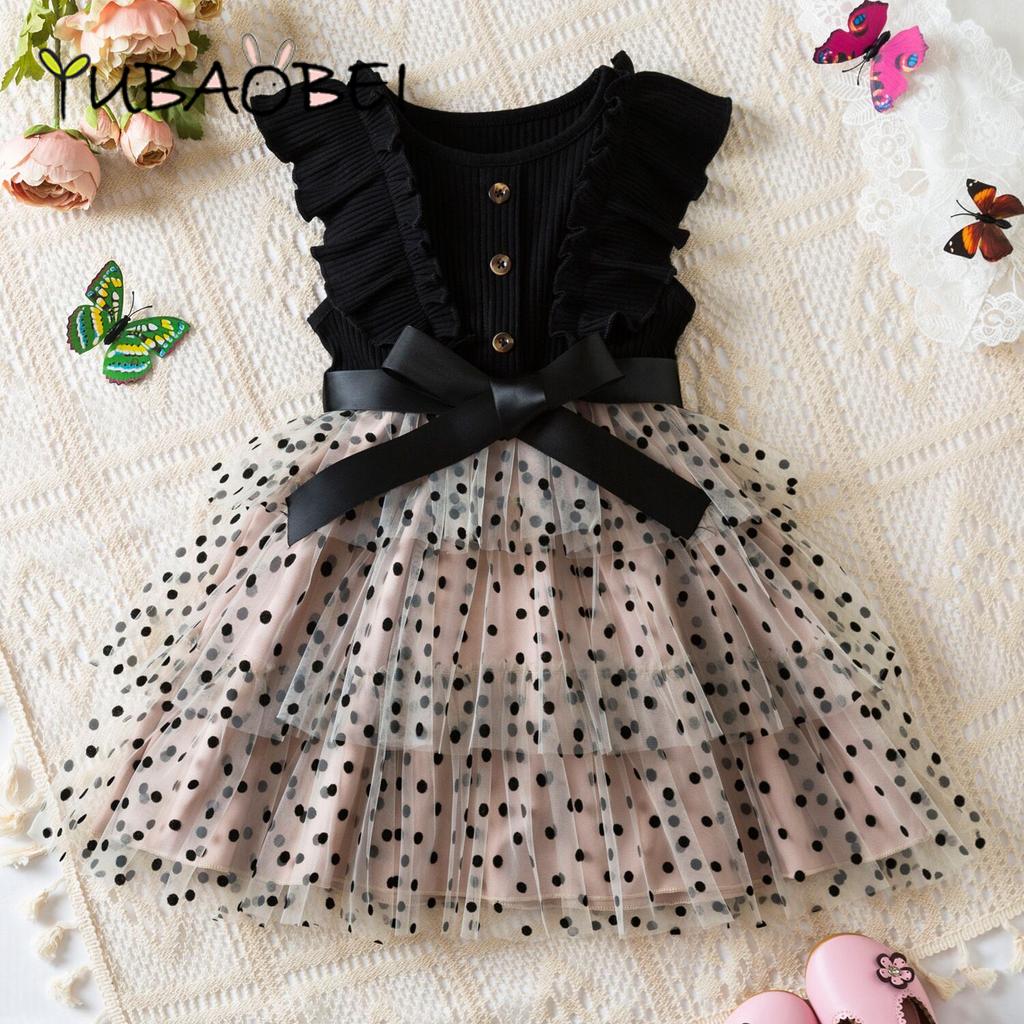 1-6 Jahre alte Kinder Kuchen Kleid Sommer Mädchen gestrickte Top Gaze Kleider Polka Dots Prinzessin Puffy Kleider für Baby