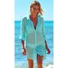 Damen Bikini-Shirt mit einfarbigem Faltenstoff, Taschenknopf, Strandüberzug