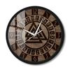 Nordisches Valknut-Symbol und Runen, modernes Design, Wanduhr, keltisches Muster, Amulett, Wohnkultur, Uhr, Wikinger-Kunstdruck, Wanduhr