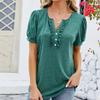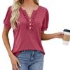Frühling Sommer T-Shirts Einfarbig Damen Top Mode V-Ausschnitt Knopf Holzohrkante Kurzarm T-Shirt