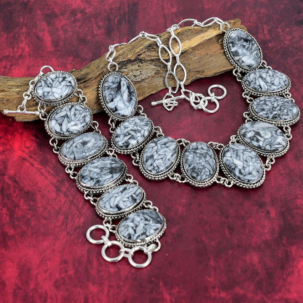 Pinolith Edelstein Üppiges Armband & Halskette, 925 Sterlingsilber Schmuckset, Verstellbares Schmuckset Handgefertigter Silberschmuck Geschenk für Freund