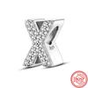 925 Sterlingsilber Pavé Klarer Zirkon A-Z 26 Buchstaben Alphabet Glänzende Perlen Passend für Original Charm-Armband Feiner DIY-Schmuck