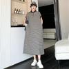 Sommer Damen Kleid Plus Größe Lockeres Temperament Lässig Kleines Revers Bedecktes Fleisch Gestreifte Kleider