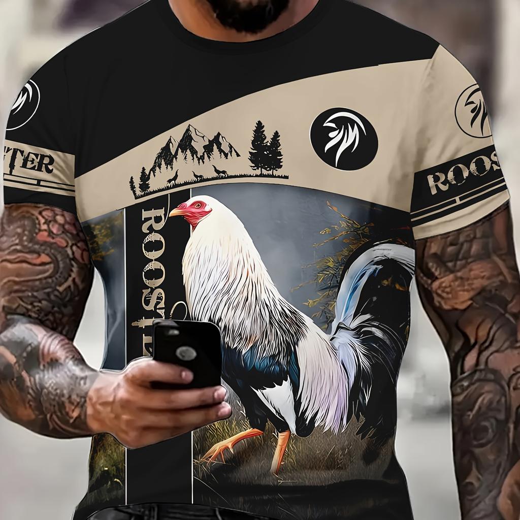 Lustiger Hahn 3D-Druck Herrenmode Colorblock Bequemes Atmungsaktives T-Shirt, Neues Lässiges Rundhals Kurzarm T-Shirt für Frühling Sommer Herrenbekleidung
