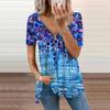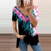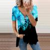 Damen Top Sommer Neue Mode Blau Perle Rose Gedruckt Casual Reißverschluss V-Ausschnitt Kurzarm Top