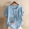 Damenmode Rundhals Kurzarm T-Shirt Lässig Baumwolle Leinen Grafikshirt Freizeit Locker Niedlich Buchstabenaufdruck Sommer Bluse Tops Übergröße