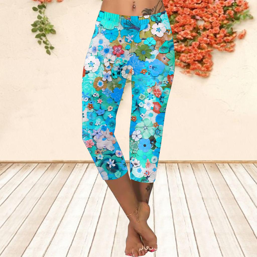 Lange Hosen Sommer Kurze Leggings Kurze Enge Hosen Übergröße Leggins Damen Slim Fit 3D Sommer Teich Bedruckte Lange Hosen