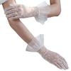 WG063 Elegante Hochzeits-Brauthandschuhe Weicher Tüll Punkte Rüschen Kurz Weiß Handgelenk Braut Brautjungfer Handschuhe Damen Festzug Handschuh