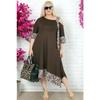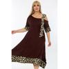 Damen-Kleid in großen Größen, Übergröße, kurzärmelig, schwarzes Leopardenmuster, detaillierte Taschen