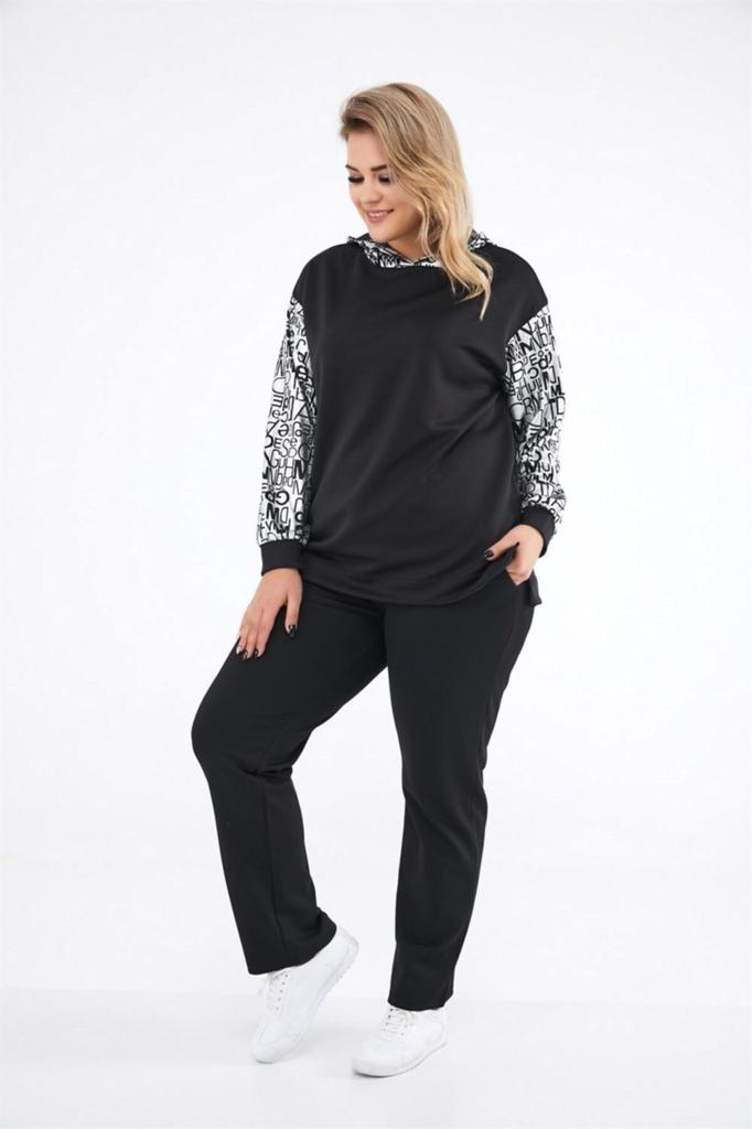 Damen Stil Übergröße Hose Schwarz Röhrenbein Strickhose