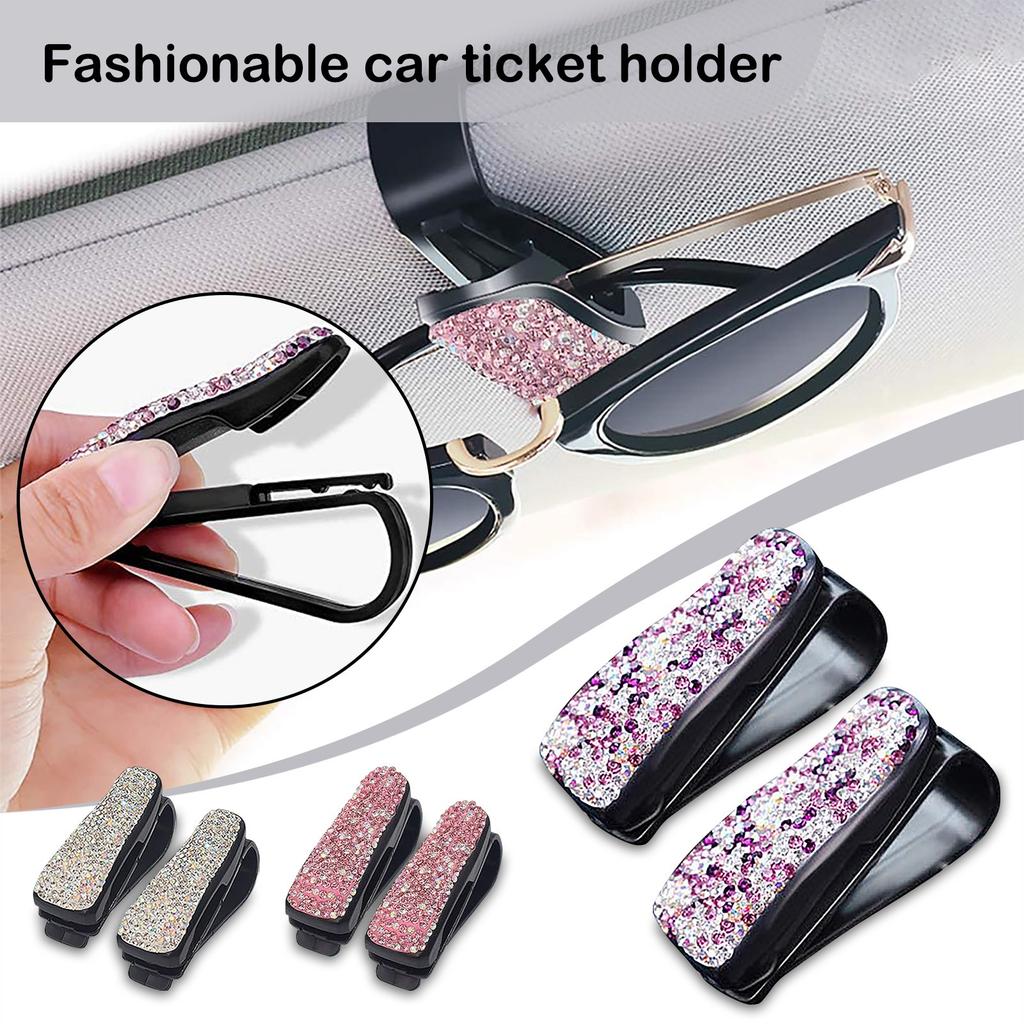 Brillenhalter für Auto-Sonnenblende 2er-Pack, Bling Bling Diamant Sonnenbrillen Brillen