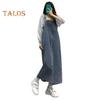 Hosenträger-Jeanskleid, locker, kragenlos, rückenfrei, ärmellos, Seitentaschen, geteilter Saum, einfarbig, verstellbarer Schultergurt, Midikleid für Studenten