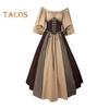 Vinatge Damenkleid mit fliegenden Ärmeln, Kontrastfarbe, A-Linie, großer Saum, schmale Taille, plissierter Schnürriemen, mittelalterliche Halloween-Party, Cosplay-Kostümparty