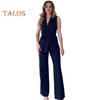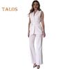 2 Teile/satz Frauen Mantel Hosen Set V-ausschnitt Schnürung Schlanke Taille Mittlere Länge Strickjacke Ärmellose Jacke Breites Bein Hohe Taille Gerade Hose Dame Formale