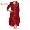 2 Teile/satz Damen Strickjacke Kleid Set Spitze Blumenstickerei O Hals Slim Fit Midikleid Dünn Unregelmäßig Dreiviertel Ärmel Mittellang Mantel Formal