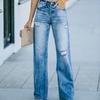 Jeans frauen mode gewaschen löcher dünne breite bein hosen denim hosen frauen