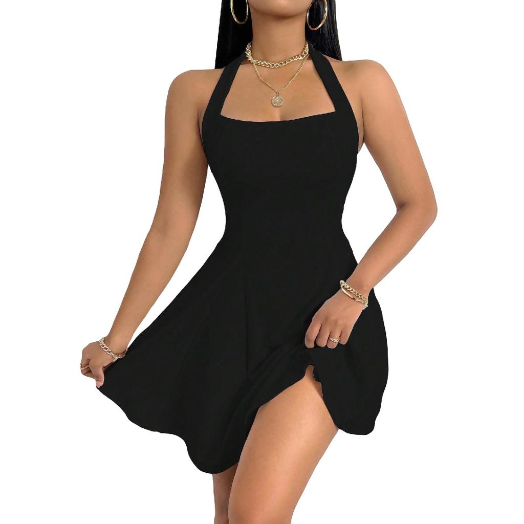 DAMEN rückenfreies ausgestelltes Neckholder-Kurzkleid schlafloses A-Linien-Minikleid