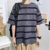Sommer Herren Kurzarm T-Shirt Locker und Vielseitig Studenten Trend Mode Halbarm Oberteil Atmungsaktiv und Schweißabsorbierend Rundhals Streifen Pullover