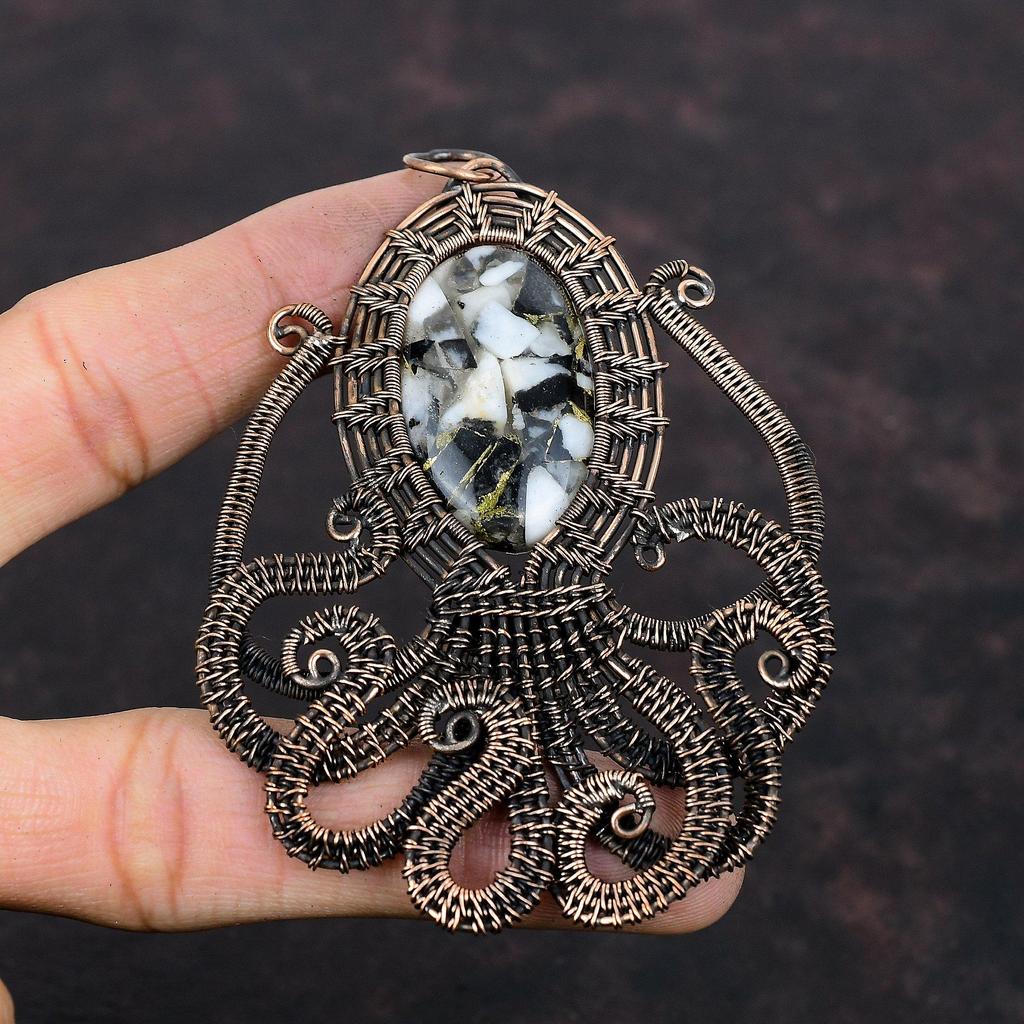 Copper Black & White Turquoise Pendant Copper Wire Wrapped Pendant Gemstone Copper Jewelry Handmade Octopus Pendant Elegant Pendant For Gift