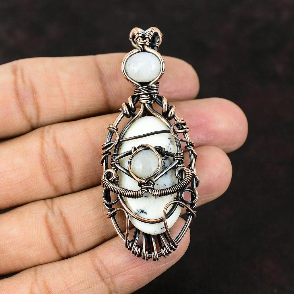 Evil Eye Dendrit Opal Kupferdraht Gewickelter Anhänger Edelstein Kupfer Schmuck Handgemacht Designer Anhänger Regenbogen Mondstein Evil Eye Anhänger Geschenk