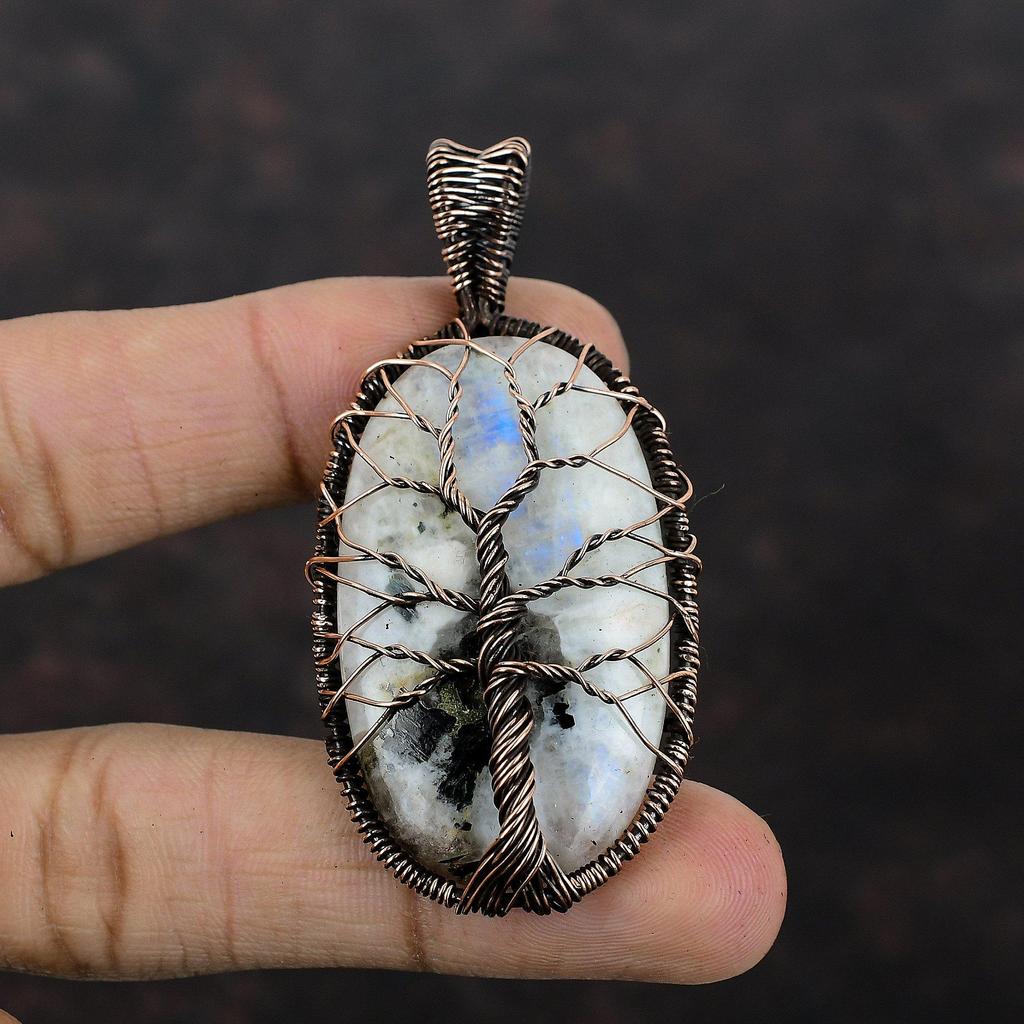 Baum des Lebens Regenbogen Mondstein Anhänger Kupferdraht gewickelt Anhänger Antik Schmuck Handarbeit Anhänger Kupfer Schmuck für Geschenk Edelstein Anhänger