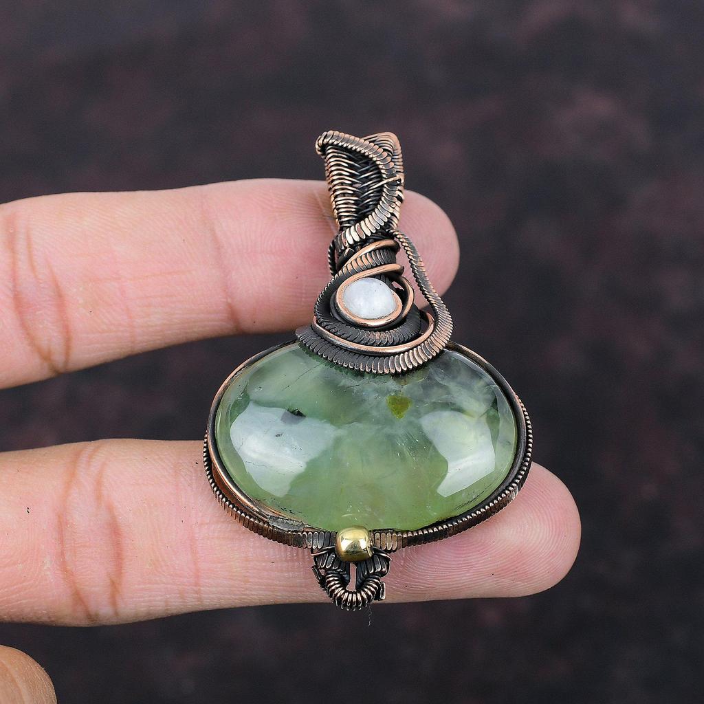 Moss Prehnite Pendant Copper Wire Wrapped Gemstone Pendant Handmade Wire Wrap Jewelry For Gift Rainbow Moonstone Pendant Jewelry For Women
