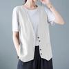 Ärmellose Damen-Weste aus Baumwollleinen mit Knopfleiste und V-Ausschnitt