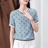 Kurzarm Damen Shirt Vintage Quadratisch Kariertes Oberteile Bedrucktes Eisseidenhemd Sommerbluse Gerippte Elegante Damen Blusen