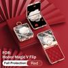 Galvanisiertes Lederetui mit Fingerringhalter für Honor Magic V Flip. Luxuriöse Linsenschutzbeschichtung mit Diamanten für Honor MagicV Flip LRA-AN00