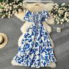 Floral Print Maxi Kleid Sommer Frauen Off Schultern Kurzarm Party Club Robe Femme Lange Kleider Urlaub
