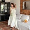 Damen Sommer süßes weißes Midikleid Hosenträgerkleider Urlaub Sommerkleid