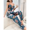 Sexy, atmungsaktives Pyjama-Set für Damen mit Streifen-/Blumendruck, Oberteil mit Sling und V-Ausschnitt, hohe Taille, gerade Hose, schmales Nachtwäsche-Set, weiches, bequemes Heimkleid-Set