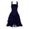 Cosplay-Kleid für Damen im Gothic-Stil, Hexe, mehrlagig, Rüschensaum, Netzstoff, Halloween-Party-Kostüm, Schnürriemen, kragenlos, Reißverschluss, ärmellos, A-Linie, Performance