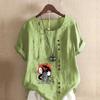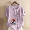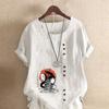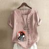 Damenmode Cartoon-Figuren Bedrucktes Kurzarm-T-Shirt Lockeres Baumwollhemd Lässige Lockere Sommerbluse Tops