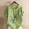 Damenmode Bunt Bedrucktes Hunde Rundhals Kurzarm T-Shirt Lässig Baumwolle Leinen Grafikshirt Freizeit Locker Sommer Bluse Tops