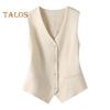 Damen Weste Ärmellos Einreihig Western Style Slim Fit Cardigan Anzugmantel Reine Farbe V-Ausschnitt Formelle Business-Stil Damenweste