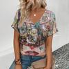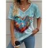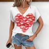 2024 Sommer Freizeit Bequemes T-Shirt Damen Elegantes V-Ausschnitt T-Shirt Mode Herzförmiges Muster Druck Kurzarm T-Shirt