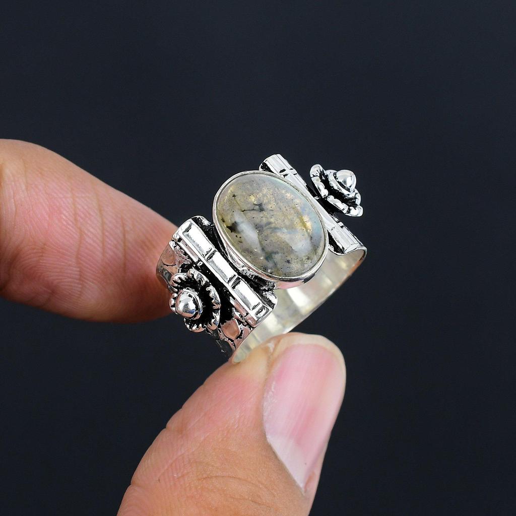 Silberring mit natürlichem Labradorit-Edelstein | 925er Sterlingsilber | Antiker Silberschmuck | Handgefertigte Vintage-Silberringe für Frauen und Mädchen