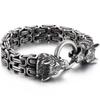 Gothic Punk Wolfskopf Herrenarmband für Männer Vintage Edelstahl 14MM Doppelkette Herrenarmbänder Männlicher Schmuck Zubehör