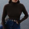 GMXIA Damen Halbhoher Kragen Unterhemd Herbst und Winter Neu Temperamentvoll und Elegant Schlank Warm Langärmliges Innen-Jumper